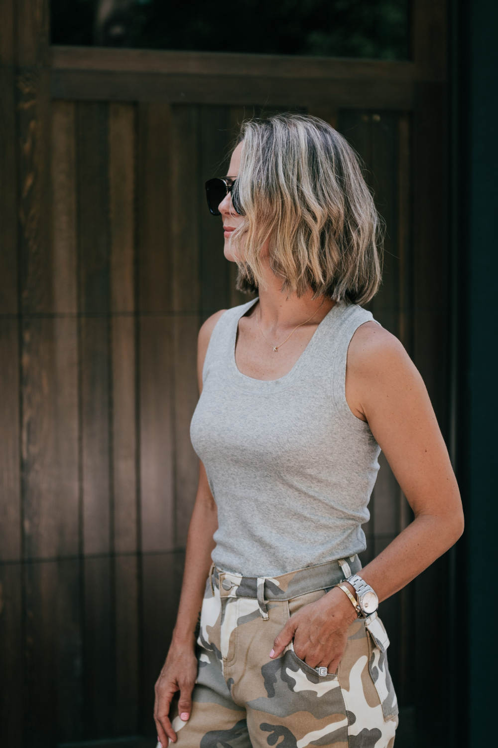 Hi, sweet friends! Back to a good ol’ outfit post today featuring a classic pair of camo pants and a staple tank… 🙂