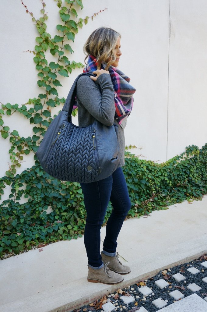 I am obsessed with not only that bag but your outfit!! So perfect for fall! I love a good bag for my stuff and all the kids.
