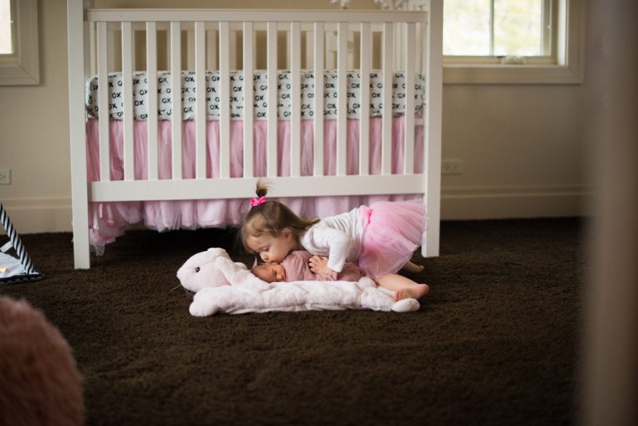 I was worried how Harper would react to another little human entering our family, but she’s been such a sweet big sister. She loves to give the baby hugs and “pet” her head. Sure, she can get a bit too lovey and sometimes she puts stickers on the baby, but it warms my heart to see my two girls together.
